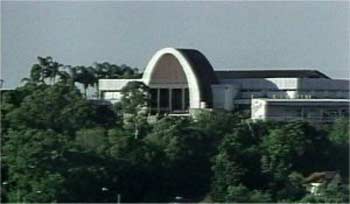 On a commanding hilltop site in the Bowen Hills above Brisbane, Cloudland’s distinctive parabolic laminated roof arch, nearly 18 meters high, was visible for miles, and was illuminated at night.